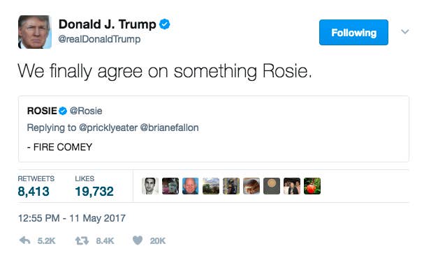 Trump digs up, and shares, an old tweet from Rosie O'Donnell calling for Comey to be fired